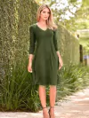 VESTIDO DECOTE V TRAPEZIO LISO MANGA 3/4 DEL AMO